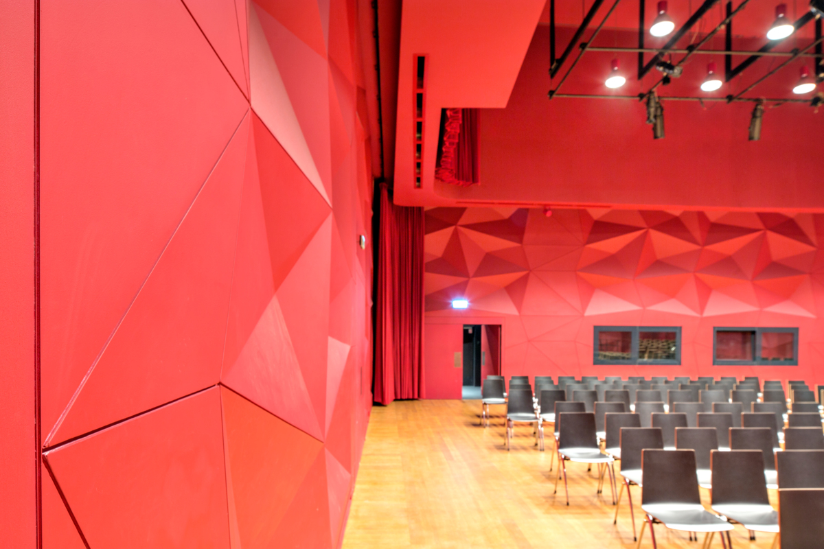 A Nemzeti Zenei Fórum az utóbbi évek egyik leglátványosabb projektje. Az egyik legnagyobb értékét a fekete és fehér kontrasztjára támaszkodó belső terek adják, amelyek a virtuóz frakkját idézik meg. A központi terem leginkább szembeötlő eleme a vitorlát mintázó nagy mobil akusztikai mennyezet. A tíz-egynéhány kötelekre rögzített panel szabadon mozgatható fel és le. Szárazépítészeti megoldások találhatók még a balkonok beépítésében, a függesztett mennyezeteknél, valamint a lépcsőházak burkolatánál. A kamaratermek válaszfalai és mennyezetei is így készültek.