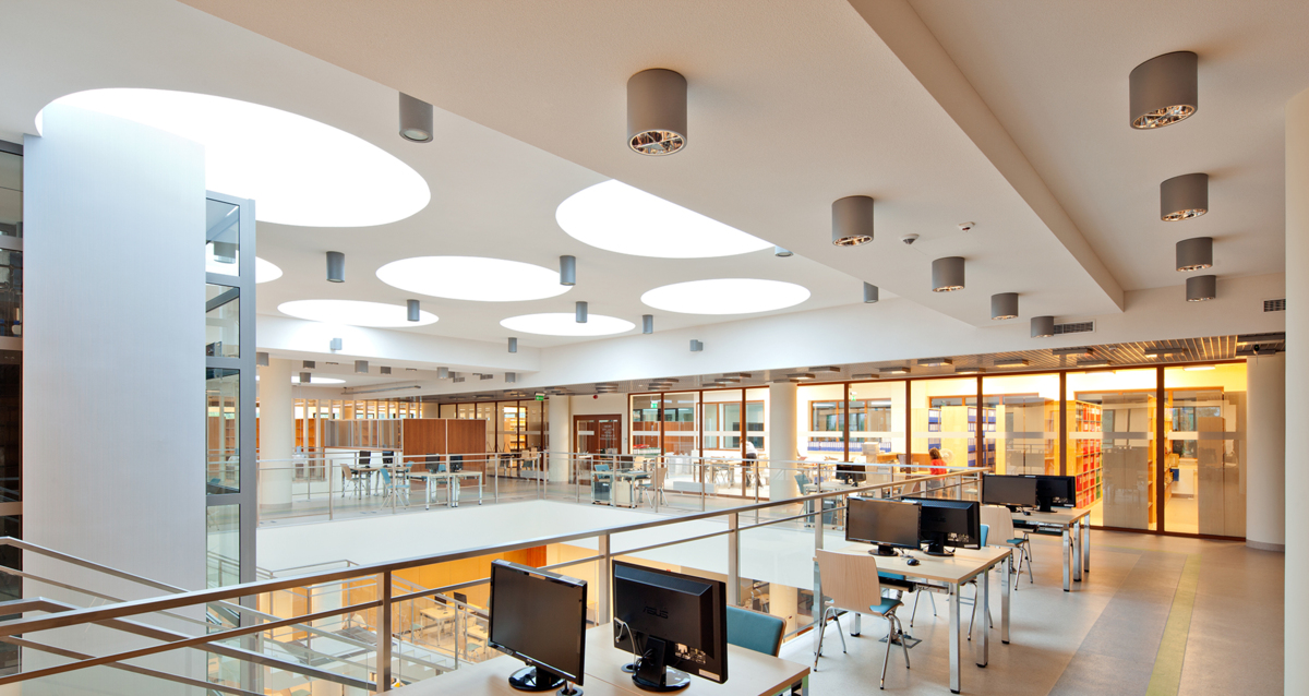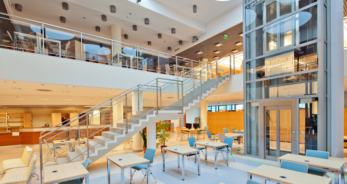 „A Központ sikerének kulcsa a funkcionalitása volt. Közös munkahellyé kellett válnia a diákok és a tudományos dolgozók, de a régió vállalkozói számára is. Ezt a célt a belső tér megfelelő kialakításával lehetett elérni. A központban egyszerre több, egymástól független projekt működhet párhuzamosan, biztosítva a kényelmes munkavégzést.”