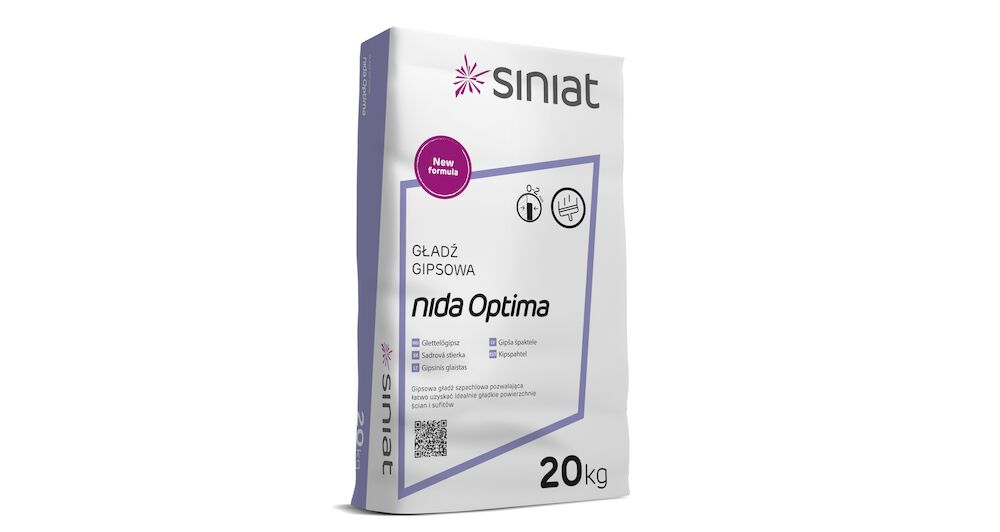 A Nida Optima egy kézzel felhordható gipsz alapú glettelő anyag. A termék alkalmazható gipszvakolaton, gipszkarton lemezeken, cement-mész alapú vakolatokon, sima beton felületeken, stb. A termék fehér színe csökkenti a festési anyagszükségletet. A Nida Optima jellemzői még a felülethez való nagyon jó tapadási képesség, a száradás közbeni igen csekély zsugorodás, éppen ezért alkalmas az alapzat mindennemű egyenetlenségeinek kiegyenlítésére. Vízzel való kikeverése után egy plasztikus massza a végeredény, ami megkönnyíti az anyag felhordását és eldolgozását úgy, hogy már csiszolás előtt is sima felületeket kapunk. Javasolt rétegvastagság 2-től 4 mm-ig terjed, azonban helyenként elérheti akár a 6 mm-t. A termék felhordható az ú.n. „nedves a nedvesre” technológiával, rögtön az első réteg meghúzása után. A termék feldolgozhatósági ideje kb. 60 perc, amit nem befolyásol sem a környezet nedvességtartalma, sem a hőmérséklet. Az anyag nem éghető, A1 osztályú. Felhasználhatósági ideje - 12 hónap. A termék receptúrája természetes anyagokból tevődik össze, ennek köszönhetően Ph értéke semleges, így a vele való munka közben nem okoz semmilyen bőrirritációt. Glettelési minőségi osztálya Q3 és Q4.
