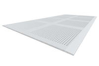 Hangelnyelő képességű gipszkarton lap hézagmentes burkolatokhoz 8 perforált mezővel, körben nem perforált kerettel egy perforált mezővel, körben nem perforált kerettel. Elrendezésű négyzet perforációval,8 mezővel a lemez teljes felületén, főleg nagy területű helyiségekhez, ahol nagy hangelnyelő tulajdonságokra van szükség. Tökéletesen elnyeli az emberi hanghullámokat és egyben semlegesíti a hangvisszaverés – visszhang jelenségét. Fehér színű üvegszövet hátoldali kasírozással.