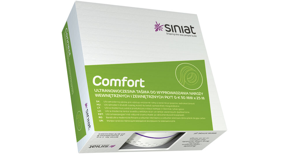 A Siniat vállalat Comfort nevű szalagja ultramodern, kompozit termék építőipari, ezen belül belsőépítészeti felhasználásra. Fő alkalmazási területe a gipszkarton technológiával épülő belső terekben az élek kiképzése. A szalag bázisa a kemény, repedéseknek ellenálló anyagból készült fehér színű, nagyon rugalmas és kivételesen repedésálló fólia, ez alkotja a szalag magját. Ezt mindkét oldalán a maghoz rögzített finomra vágott textilszálak fedik, lehetőséget adva arra, hogy a szalagot bármilyen fajtájú glettelő masszával, vagy festékkel be lehessen vonni. A speciálisan tervezett perforáció teszi lehetővé a szalag glettmasszába való süllyesztését. A magas nedvszívó képességnek, valamint a szalag felületi érdességének köszönhetően jelentősen növekszik az alaphoz való tapadása és a csatlakozás szilárdsága. A szalagok tökéletesen lapos felülete teszi lehetővé, hogy kiválóan alkalmazhatók legyenek bármilyen síkban lévő lapok csatlakoztatására. A szalag teljes hosszában futó osztás megkönnyíti annak az egyenletes és precíz megtörését, így mind belső, mind külső éleknél használható a befejezési (maszkolási és erősítő) munkáknál, mert ideálisan egyenes vonalakat képezhetünk segítségével.
